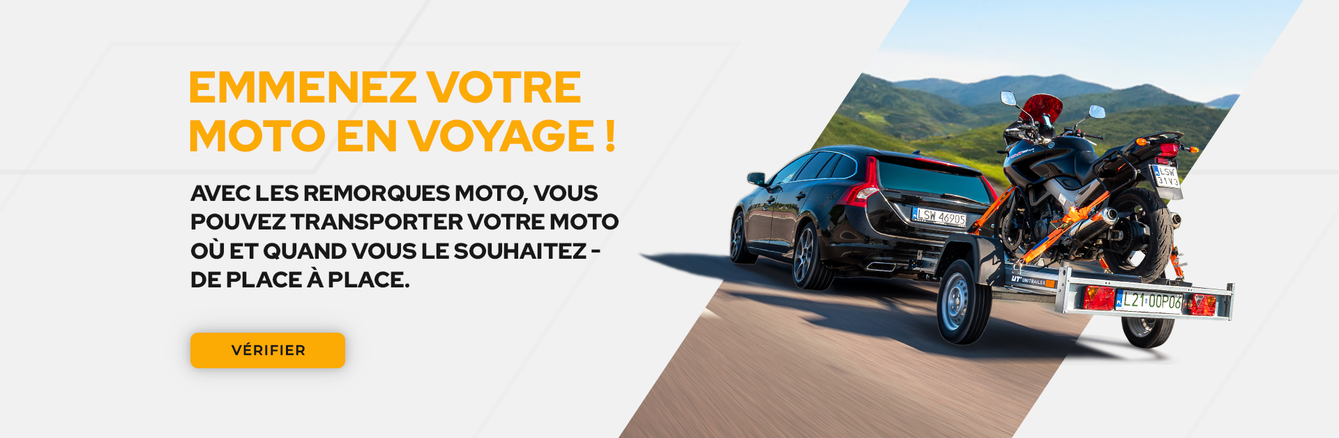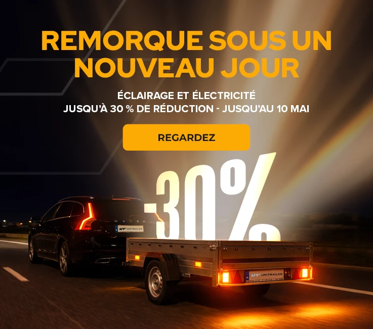 La boutique en ligne Unitrailer a été créée pour répondre à la demande croissante de pièces détachées pour remorques de voiture. Notre offre comprend une large gamme de produits : roues jockey, jantes, pneus, garde-boue et bavettes, attelages et dispositifs de dépassement, treuils, essieux et éléments de suspension, ainsi que les remorques de voiture elles-mêmes. Besoin d'accessoires fiables ? Vous êtes intéressé par l'éclairage, l'électricité ou peut-être recherchez-vous des pièces pour remorques de bateau ? Dans notre boutique, vous trouverez toutes les pièces pour remorques de voiture, remorques de bateau, caravanes et dépanneuses dont vous avez besoin. En un seul endroit, avec un service professionnel et une expédition ultra-rapide.